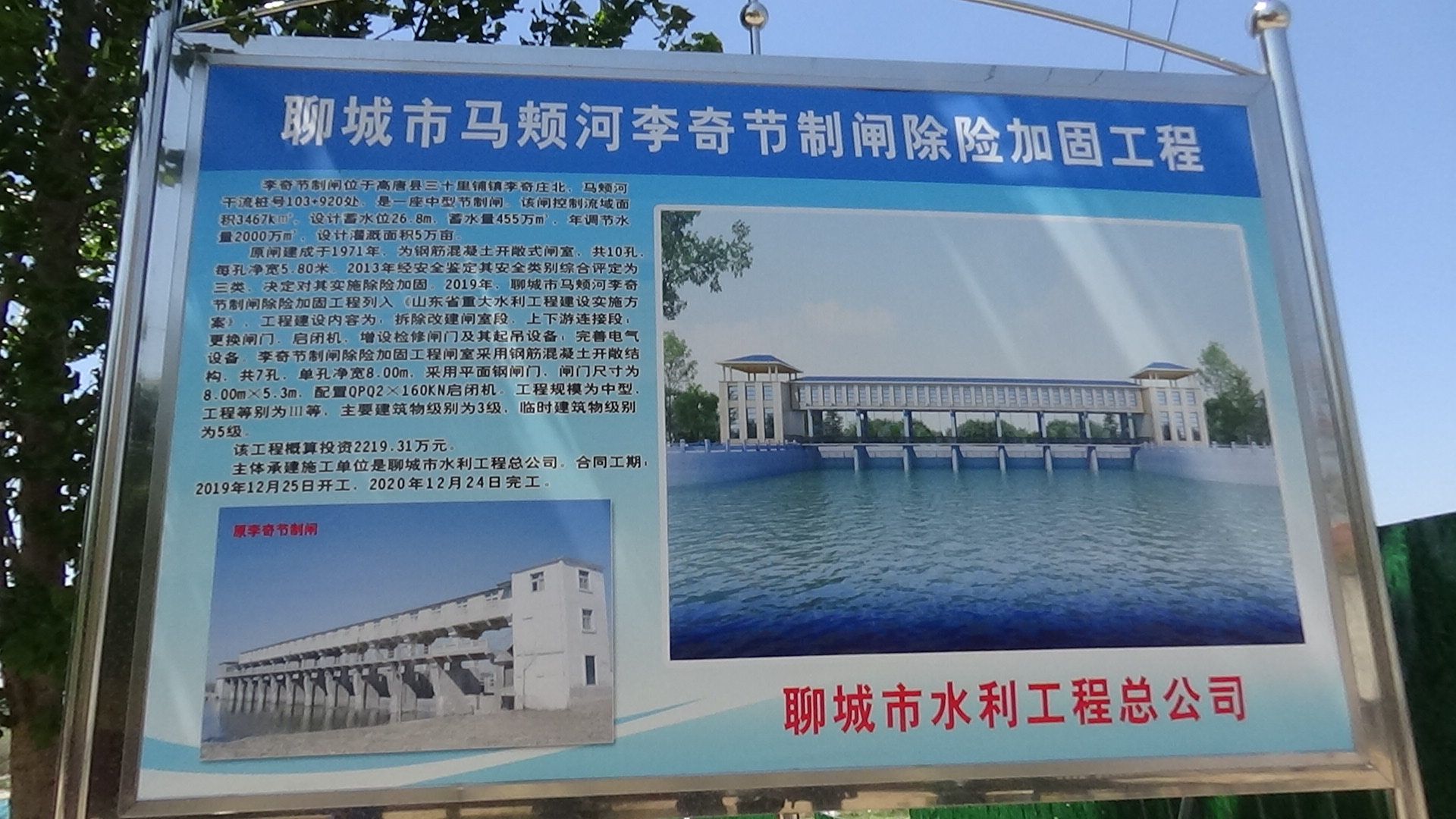 聊城市馬頰河李奇節(jié)制閘位于高唐縣三十里鋪鎮(zhèn)李奇莊北馬頰河干流樁號 103+920 處,是一座中型水閘。除險加固工程采用原閘室全部拆除改建的方案,主要建設(shè)內(nèi)容包括拆除改建閘室段;拆除改建上下游連接段;更換閘門、啟閉機,增設(shè)檢修閘門及其起吊設(shè)備;完善電氣設(shè)備。該工程概算投資2219.31萬元,主體承建施工單位為聊城市水利工程總公司。李奇節(jié)制閘設(shè)計蓄水位 26.80m,蓄水量 455 萬 m³,設(shè)計灌溉面積 5 萬畝。