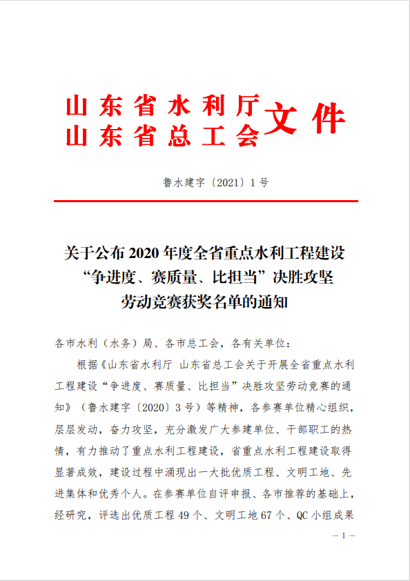 關于公布2020年度全省重點水利工程建設“爭進度 賽質(zhì)量 比擔當”決勝攻堅勞動