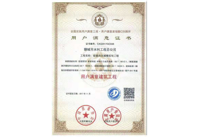 用戶滿意建筑工程證書